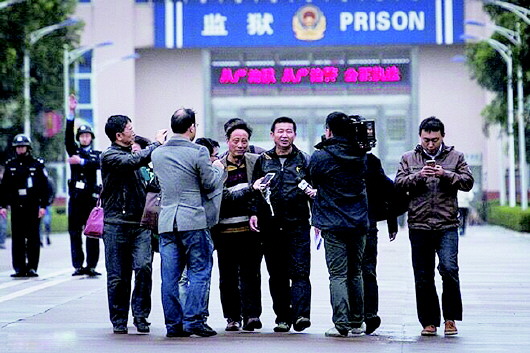 2016年2月1日,被法院宣判无罪后,已服刑23年的陈满走出海口美兰监狱大门。 (资料片)