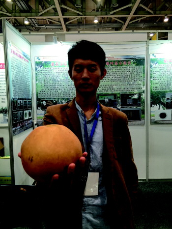 参展商展示重2斤多的滕庄梨。