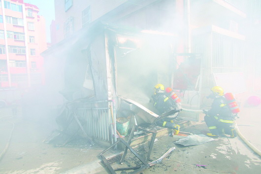 11日9时30分,威海市区西城路恒丰嘉苑3号楼下,一泡沫板房突然起火,滚滚浓烟吓得附近住户纷纷下楼躲避。消防官兵赶到很快将火扑灭,事故没有造成人员受伤。起火板房为某物业公司办公室,只有十几平方米,屋内没多少东西,也没有燃气管道。