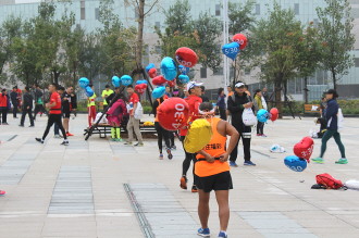 这些身上绑着气球的运动员被戏称为“兔子”,其实是“领跑员”,气球上的数字代表跑完全程所需要的时长。据“兔子”之一的“小蜜蜂”(网名)介绍说,选手可以根据自己的实际情况设定目标时长,再以其中一位相应数字的领跑员为参照,就能在目标时长内完成比赛。
