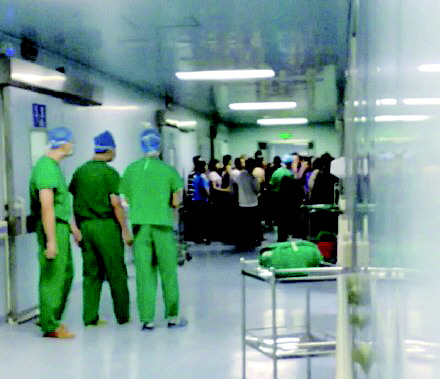他还介绍,“其间女麻醉医生雷颖到卫计局介绍情况路上也遭到家属围攻,不许医生回家。据雷颖医生介绍,截至目前,警方尚未处理任何人,而家属预报下一次冲击将在明日。”他晒出的照片显示,确有数十人聚集在医院内。