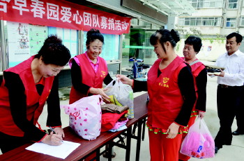 26日,在潍坊东庄社区,爱心团队正在捐赠衣服。由东庄社区党支部联合早春园爱心团队组织的“一起行动”,捐赠自己的爱心衣物,这些衣物将全部送去贫困地区,奉献自己的一份力量。