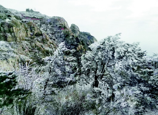 降雪虽不大,低温却为泰山带来了大面积的雾凇,从南天门向下望去,山间白色的地方基本都是雾凇,树枝上挂着冻结的乳白色冰晶,是非常难得的自然奇观。“幸运地看到了泰山的首场雪,简直是冰雪世界啊,再累再冷也值了!”不少游客把美景晒到朋友圈,难掩兴奋之情。