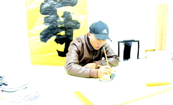 刚临摹完慈禧赐给孔府的“寿”字,专业画师邱清峰说这算是最近比较有成就感的事。