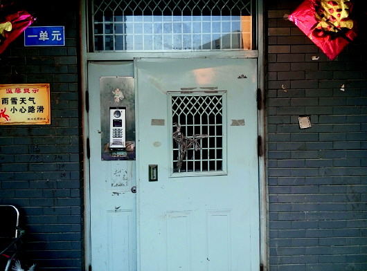 单元门口目前仍没有供暖收费通知。本报记者 孙业文 摄