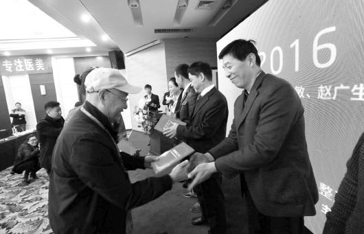 2016医美十大新技术获奖代表上台领奖。 本报记者 戴伟 摄