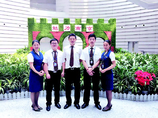 山航地服南京场站五人小组合影。
