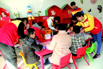 志愿者们与孩子们互动玩游戏。 本报实习生 罗钰 摄