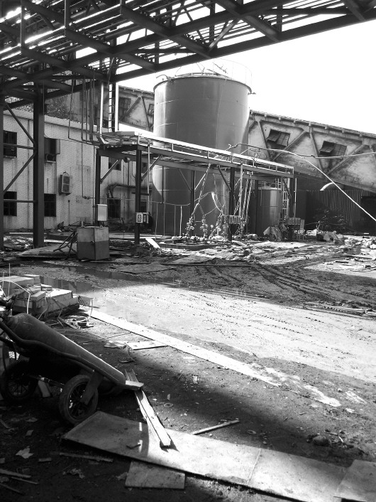 爆炸现场一片狼藉。 (受访工人供图)