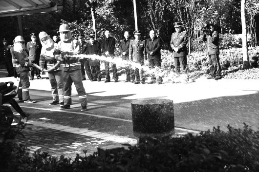 11月8日,在主题为“消除火灾隐患、共建平安社区”的全省第6个消防宣传月来临之际,德州市公安消防支队在经济技术开发区双馨苑小区举办了2016年“119”消防宣传月启动仪式暨创建消防安全示范社区活动启动仪式。在之后的小区参观现场,演示了家庭厨房起火处置方法,以及小区微型消防站应急灭火演练和“移动式家庭火灾报警模拟系统”演示,吸引了众多市民关注。此外,在本届消防宣传月启动仪式上,与会领导向受到表彰的15名“优秀社区消防宣传使者”进行了颁奖,并赠发消防宣传资料。 本报记者 马志勇 通讯员 张晓琳 摄影报道