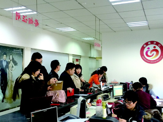 据历城区婚姻登记处统计,该区2013年1—10月有6584对新人登记结婚,2014年1—10月为6517对,而2015年仅有6000余对。“与前两年比,降幅非常明显。”历城区婚姻登记处主任孙吉峰说。