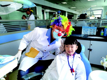 带孩子去看牙,不光孩子紧张,家长也很头痛。近日,济宁市第一人民医院口腔科门诊医生也化作“小丑医生”,夸张逗乐的打扮,极大缓解了儿童看牙的恐惧感。