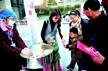 上午9点30分,记者在转盘抽奖区看到,现场不仅有抽奖盘,还有棉花糖机正在制作五颜六色的棉花糖,不少市民好奇的过来围观。小朋友可以免费领取棉花糖,很多孩子和家长把这里牢牢围住,小朋友们纷纷急切地盯住正在慢慢转动的棉花糖签,恨不得立马就能把漂亮绵软的糖吃到嘴巴里。有的家长等不及,甚至拿起竹签,自己动手帮忙做起棉花糖来,生疏笨拙的手法引起周围市民的笑声。