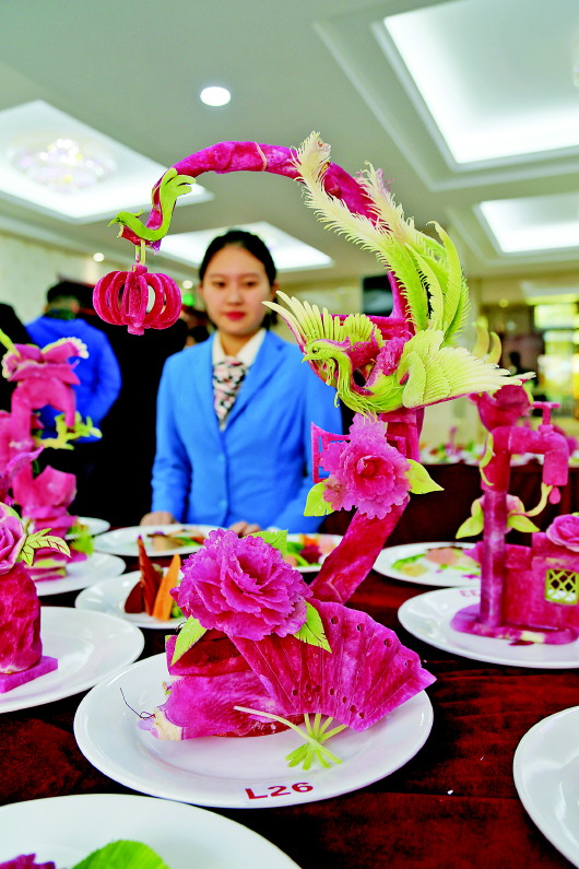 12日,“2016年山东省职业院校技能大赛(中职组)烹饪竞赛”在济南三职专举办。在层层选拔的基础上,来自全省14个市代表队的56名选手参加了中餐热菜、西餐烹饪、中西式面点、冷拼雕刻四个项目的比赛。图为参赛作品。