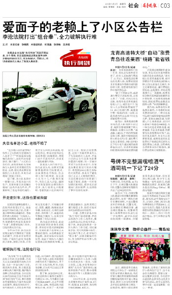 老赖还想不还钱?法院亮剑了!10月19日至12月31日,青岛全市法院开展“执行利剑”活动,集中清理本年度新收执行案件和长期未结案件,重拳打击老赖。