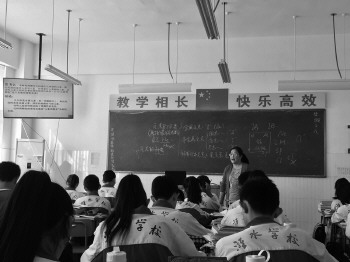 在8年级8班,记者发现课桌摆放一改传统的插秧式,改为拼起来的课桌,这是学校试点的“合作学习型课堂”。不同于以往老师的全面讲授和学生的被动听,讲台上,老师也不再是滔滔不绝、口若悬河的主角,学生是主角,不时站上讲台,比比划划、展示自己的思考,他们敢问、敢说、敢上黑板、敢下课桌讨论。这里没有老师的呵斥和监督,课堂完全是学生的舞台,老师甚至是台下的听众。而这种模式计划在新初一全部推行。