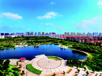 山东理工大学稷下湖。(航拍图)