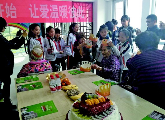 日前,鲸园街道新建等东八社区联合码头小学师生、爱心企业开展“感恩从心开始,让爱温暖彼此”送温暖活动,为11月过生日的老人唱生日歌送祝福。