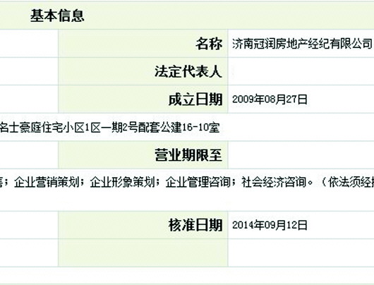 被公布的济南冠润房地产经纪有限公司信息。