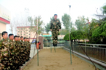 张诚彬和战士们在一起训练。