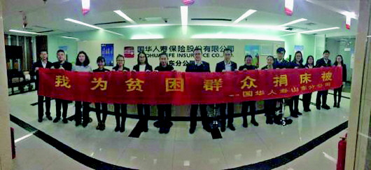 国华人寿保险为活动捐赠200床棉被。 本报记者 林媛媛 摄