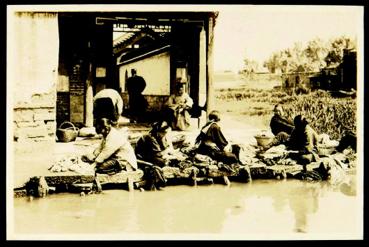 在风和日丽的春天,五六位妇女坐在湖边的青石板上,一边聊着家长里短,一边悠闲地洗着替换下的衣服。旁边的水面上,芦荻已经开始肆意生长,一只无人的画舫泊在水中等待着游客——这是一张摄于1928年的济南老照片定格下的场景,如今,这种景象在济南已成历史。通过老照片比对,妇人们临水洗衣的地方位于今大明湖汇泉寺岛西南角,大门朝西。汇泉寺岛原名清凉岛,因建有汇泉寺而改称“汇泉寺岛”。岛东侧原来有土堤与岸相连。岛边砌筑有青石板,附近居住的家庭妇女多喜欢来此洗衣。