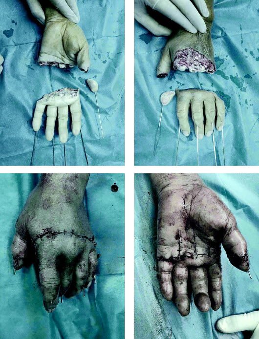 11月26日,兴福手足外科医院接到一位被裁板机致伤老年患者李先生,李先生已有65岁的高龄,此次意外致使他“左手拇指自甲中部斜行完全断离,2—4指皮肤背侧自掌骨远1/3处分离,示、中、环指关节面外露,小指自近节指骨基底部完全断离。”也就是说,患者的五个手指全部被切断。