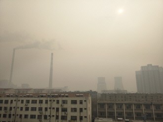 5日中午,记者在市中区十里泉电厂附近拍摄的照片。在灰蒙蒙的雾霾之下,眼前是一片居民区,不远处高高耸立的烟囱里冒着烟,远处太阳隐约可见。生活在如此“仙气缭绕”的地方,居民情何以堪? 见习记者 时尚 摄影报道