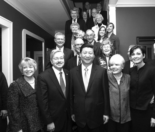 2012年2月,时任中国国家副主席的习近平访美,在艾奥瓦州与布兰斯塔德(左一)会面后与众人合影。