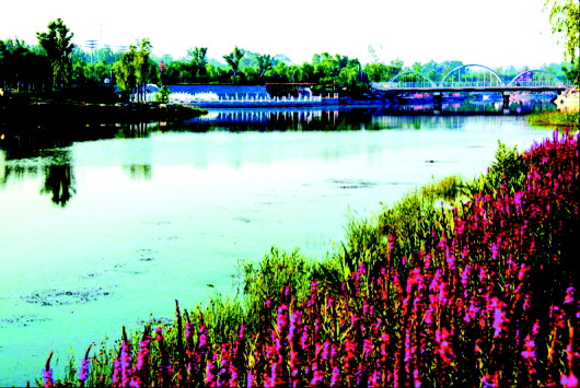 商河美景引得游客流连忘返。