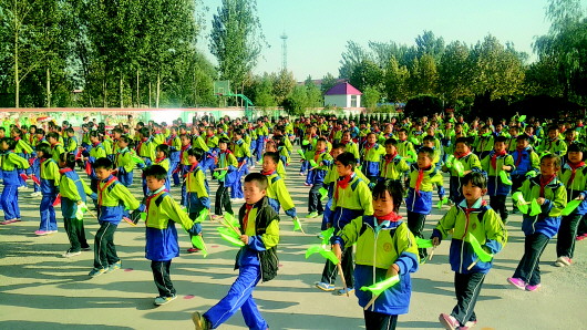 课间操学生们跳起鼓操。 夏新广 提供