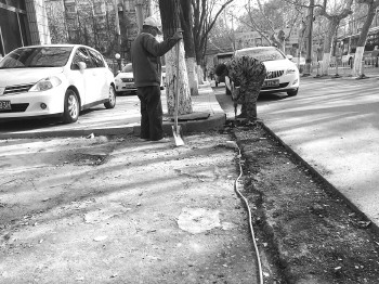 9日上午11点左右,红星路与古槐路交会处济宁市工商局附近,东郊热力公司与四和供热公司的工作人员围绕在两个井口处施工,这是两家热力公司实施的供热主管网的并网现场。