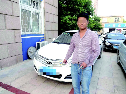 一名犯罪嫌疑人与作案车辆。