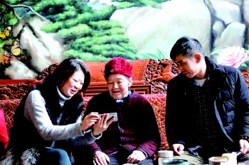 陈洪(左)给婆婆看手机上的视频。本报通讯员 李岩松 摄
