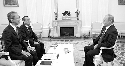 俄总统普京近日在莫斯科会见了日本《读卖新闻》总编辑沟口烈和日本电视台首席评论员粕谷贤之。