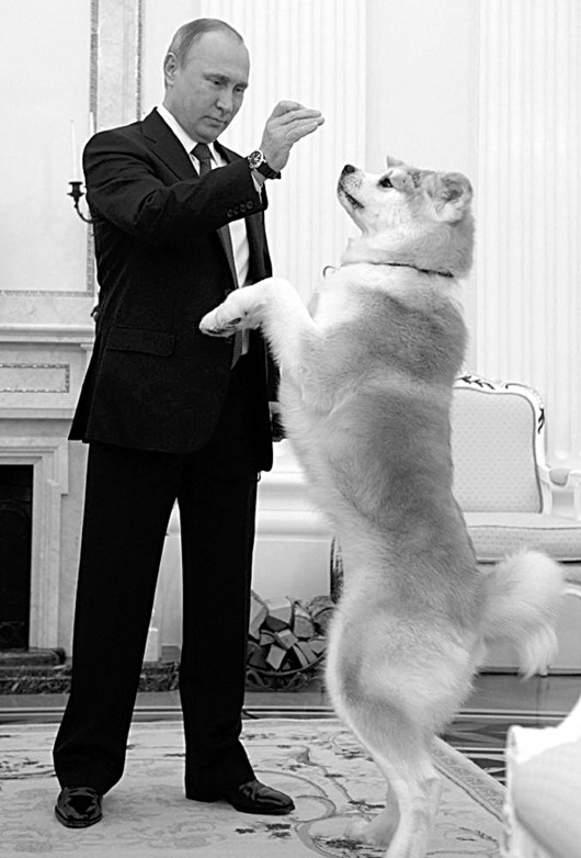 俄罗斯总统普京近日在接受日本媒体采访时,将4年前日方赠予的秋田犬“YUME”带入会场。由于摄像机和闪光灯的影响,这只秋田犬狂吠不止,普京不得不掏出狗粮安抚“YUME”,并将它带离会场。