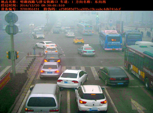 在霾肆虐的天气,电警设备上的镜头和滤光片可以根据图像清晰度自动调整、补偿图像色度,通过光电透雾、算法透雾等手段相结合,获得与实景接近的较清晰图像。