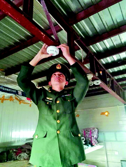 安装独立烟感报警器。 本报记者 尉伟 摄