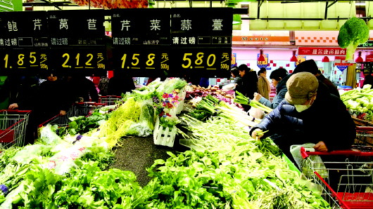 22日上午,济南一家超市的蔬菜柜台,大批市民在买菜,称量处排起了长队。尽管蔬菜价格因为天气原因涨了不少,但还能买到1元多1斤的蔬菜,比如芹菜、菠菜、生菜和西葫芦等,也有涨到十几元一斤的高价货。