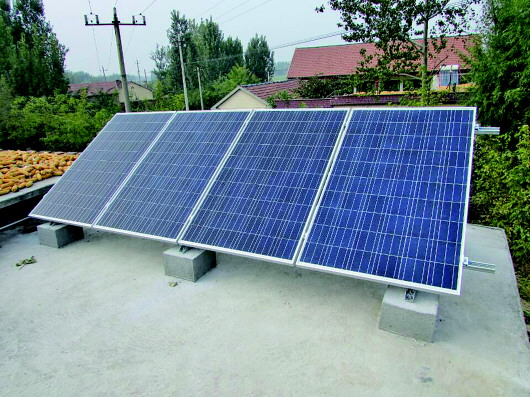 ◥贫困户在屋顶竖起了光伏发电设备。