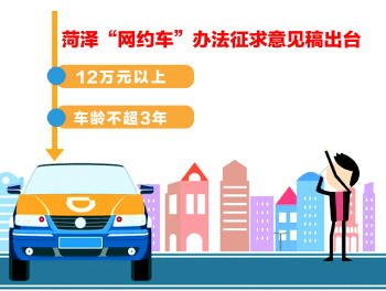 本报菏泽12月28日讯(记者 邓兴宇) 作为近年来兴起的网约车,稍微有点风吹草动,都会成为各方关注的焦点。28日,菏泽市交通运输局发布了《菏泽市人民政府关于深化改革推进出租汽车行业健康发展的实施意见》(征求意见稿)及《菏泽市网络预约出租汽车经营服务管理实施细则(征求意见稿)》,征求意见时间即日起至2017年1月10日。其中,征求意见稿对网约车驾驶员及车辆做出了详细规定,不少市民认为规定的网约车“门槛”过高。