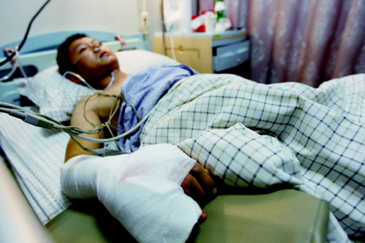 辅警李志刚右手骨折