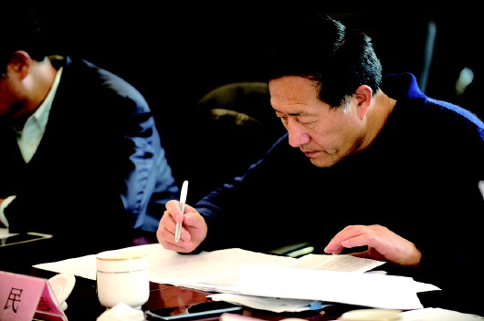 评审专家在现场认真评议。 本报记者 戴伟 摄