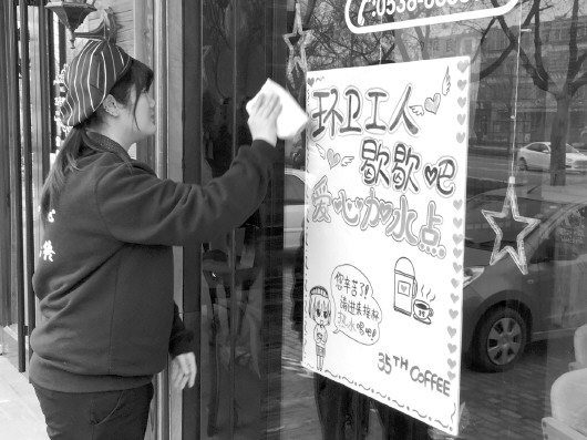 4日,位于岱宗大街的35号咖啡将新做的“环卫工人歇歇吧”标识贴在了门口醒目位置,上面画着一个卡通女孩面带微笑举着一杯热水,旁边写着“您辛苦了,请您进来接杯热水喝吧”。不少路过市民驻足观看。经理朱继强告诉记者,这个标识是他们店内工作人员用了一上午时间手绘的,因为怕一些环卫工人有顾虑不愿意进店,他们还贴心提醒:店内有热水,您可以拿自己的杯子进来接热水。“我们准备了热茶,还有柠檬水。”提起做这个活动的初衷,朱继强称,店门口不少大树,秋天落叶的时候,环卫工人都忙到晚上9点多。冬天下雪,又是环卫工人冒雪洒盐水化冰。“环卫工人年纪都偏大,我们年轻人都在空调房里,而他们还在户外受冻。将心比心,我们愿意为他们送去最多温暖。”