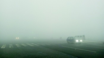 1月4日上午,聊城气象台发布大雾红色预警,聊城大部分地区出现能见度小于50米的雾,图为车辆在雾中穿行。 本报记者 李军 摄