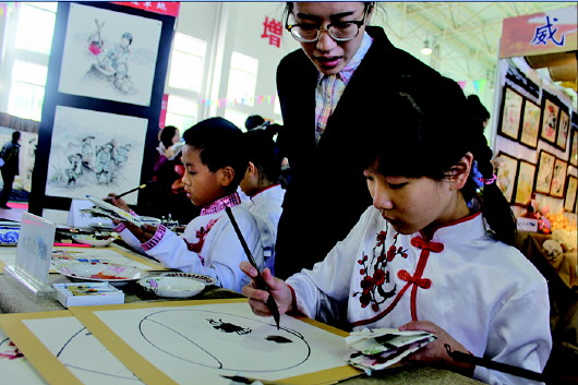 日前,锦华小学开展了”创意水墨画”画展活动,旨在传承和发展民族传统文化。 本报记者 陈乃彰通讯员 郝凤莲 摄影报道