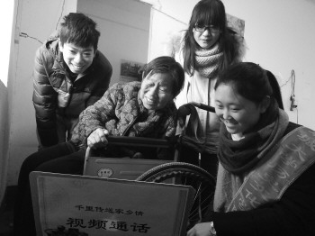 1月8日,聊城大学历史文化与旅游学院志愿者于董付村念慈公寓举办了“家乡情,千里传”活动,志愿者帮助老人与其在外地的儿女进行视频通话,小小视频传递了爱与思念,老人从中体会到了同学们的关爱,也感受到了亲情的温暖。 本报记者 李军 通讯员 孙凡婷 张亚楠 摄