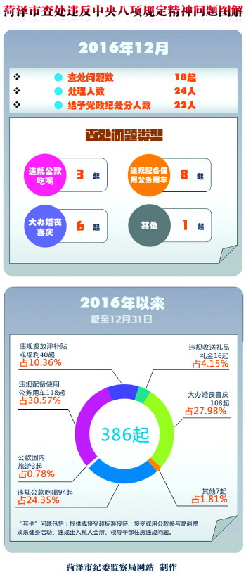 菏泽市全年共查处违反中央精神问题386起,扶贫领域问题87起