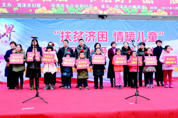 7日上午,由菏泽市妇联、菏泽市慈善总会联合爱心企业举办的“扶贫济困 情暖儿童”爱心捐赠仪式圆满举行。仪式上,爱心企业辽宁辉山乳业为菏泽市贫困儿童捐赠了价值50万元的奶粉,菏泽本土企业家韩继英女士现场捐赠5万元作为菏泽市妇女儿童专项救助资金。现场爱心汇聚,温暖着每一位受捐者。 本报记者 邢孟 摄影报道