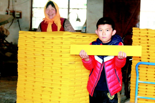 沿大沽河河堤进入谈家庄村,不远处就是村民谈伟的黄香加工厂,作为村里第四代制香人中的佼佼者,谈伟每年到了腊月里都非常忙碌。在谈伟的带领下,记者进入他的加工厂,虽然名为加工厂,但是记者发现这里其实更像农家聚会,十几名老人在一间大屋里生起火炉,坐在马扎上一边聊着天一边制着香,时不时地还哼上几句小曲,欢声笑语中丝毫感觉不到工厂内工作节奏的紧迫感。谈伟说,这里的工人都是村里的村民,大部分都60岁以上,每到年底他们都会来制香。单靠着制香,这些老人每月就可以赚到超过2000元。